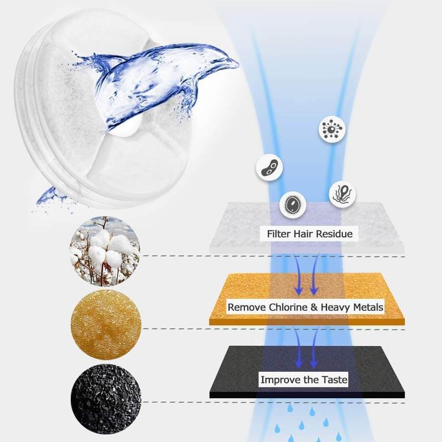 - CLEANER AND FRESHER WATER The Pet Water Fountain is equipped Premium activated carbon filters, that will catch hair, debris while removing impurities. The water is kept clean and tests better. The Triple Activated Charcoal and Ion Exchange Filter ensures the water remains fresh and odor free. It is Recommended to replace the filter every 3 weeks.
